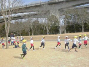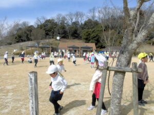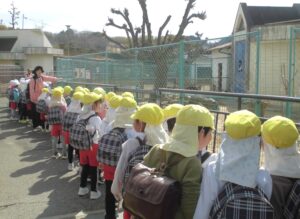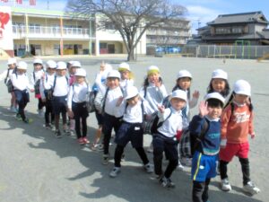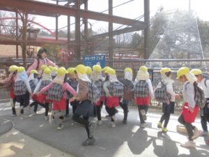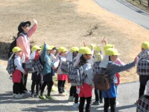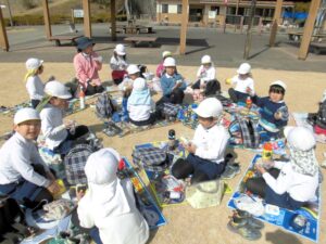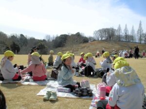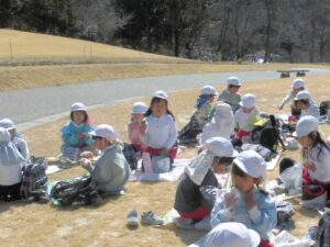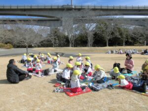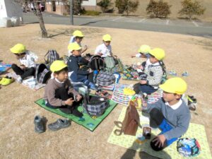 まふみ幼稚園では、毎週金曜日がおにぎり弁当の日。今週は年長さんがおにぎり弁当を持って、園外保育に出かけました。