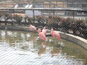 今日のフラミンゴさんはなぜかみんな2本足。「1本足、疲れちゃったのかな。」「今日はあたたかいからかなぁ。」