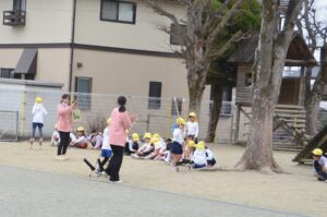 これで年長さん86人が全員竹馬名人になりました。本当にみんな頑張りました。なかなかうまくできなくて悔しい思いをしたお友だちもたくさんいたと思いますが、こうやって全員が竹馬名人になれたことで、自信を持って小学校に進んでくれることと思います。おめでとう!