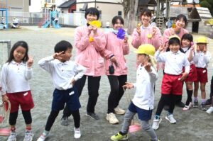 また、竹馬でゴールできた先生たちにも、お友だちから手作りメダルがプレゼントされました。