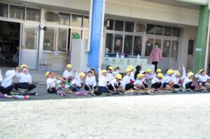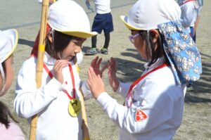 全員がゴールすると最後に担任の先生たちがチャレンジ。先生のゴールに子どもたちも大喜びでした。