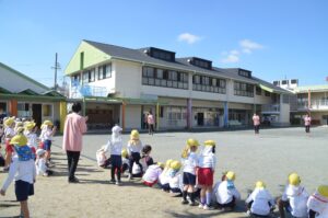 今日の午後、年長さんたちの竹馬大会が開催され、やる気マックスの年長さんたちがクラスごとに一斉にスタートしました。