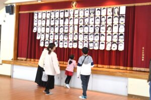 登園してきたお友だちは、お家の方に自分の絵画を教えてあげたり、一緒に作品を探したりして、それぞれの部屋を見て回りました。