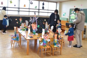 また、今回の作品展では、子どもたちの製作活動の様子をお家の方に見ていただきました。