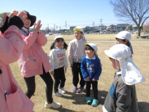 さあ、時間内でコンプリートできるように頑張りましょう!『はるめき』という桜がきれいに咲いていて、年長さんを応援してくれているようでした。