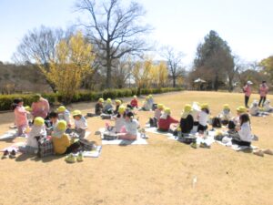 まふみっことしてこの芝生広場で遊ぶのも最後です。先生やお友だちとたくさん遊んで、楽しかったですね。