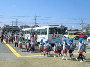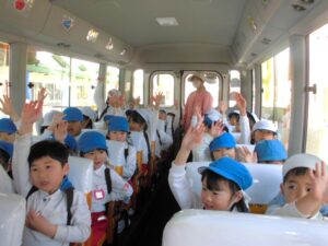 芝生広場で遊んだ後、お迎えに来てくれたバスに乗って幼稚園に帰りました。