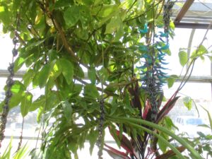 池の奥には珍しい『ヒスイカズラ』という花が咲き始めていました。きれいなヒスイ色で、もう少しするともっときれいな色がたくさん見られるようです。