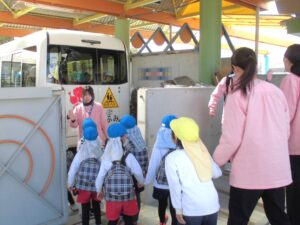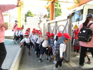 芝生広場で遊んだ後、お迎えに来てくれたバスに乗って幼稚園に帰りました。
