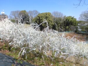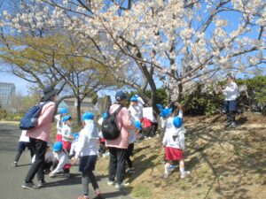 公園では、クラスのお友だちと一緒に、いろいろな春を見つけました。今日は真っ白なゆきやなぎがとてもきれいでした。