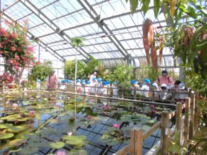 今日は特別に温室の中も見に行った年中さん。大きなサボテンや水に浮かぶ蓮の花をのぞき込んで見ていました。