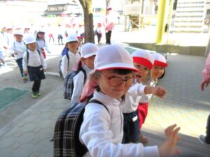 今日は、今のクラスのお友だちとお出かけする最後の園外保育『お別れ遠足』です。