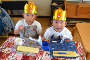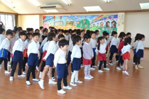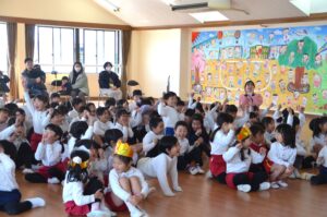 金曜日は父母の会のお母さん方もお迎えして、年長さんとのお別れ会があります。卒園の日まで1日1日を大切に楽しい思い出を作っていきます。