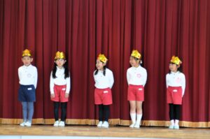 「今日はおばあちゃん二人も来るんだー♡」と嬉しそうに話す年長さん。今日は5人のお友だちが舞台にあがりました。