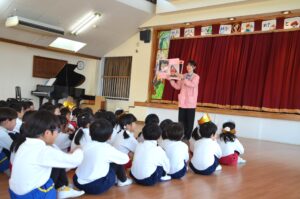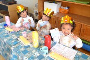 金曜日は父母の会のお母さん方もお迎えして、年長さんとのお別れ会があります。卒園の日まで1日1日を大切に楽しい思い出を作っていきます。
