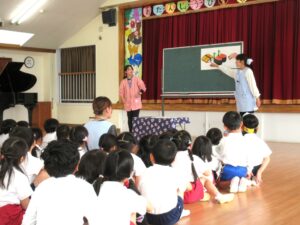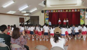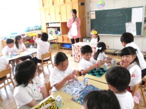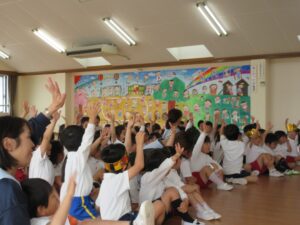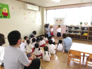 年長さんは全員で遊戯室に行って誕生会をしました。