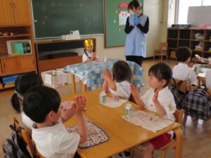 誕生会の後はクラスのお友だちとおやつパーティーをしました。