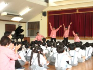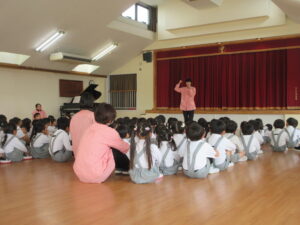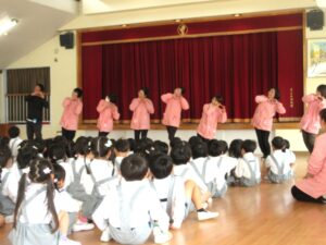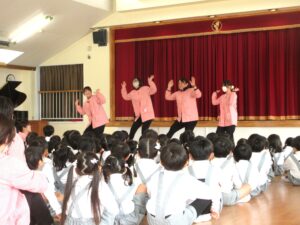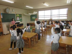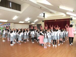 始業式では、みんなで元気にお歌を歌いました。園長先生のお話しもしっかり聞けました。来週から入ってくるみんなより小さい年少さんに優しくしてあげてくださいね!と言われると「はい!」と元気にお返事ができました。