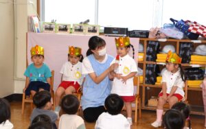 年中さんと年少さんも、誕生日のお友だちはどのクラスもとても上手にお話ができ、聞いているお友だちもしっかり聞けていて、楽しい誕生会になりました。
