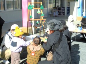 今日は陽ざしが暖かく、マミーズリンクでも遊びに来てくれたお友だちが、かわいいクリスマスツリーを作りましたよ。