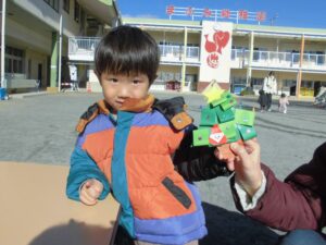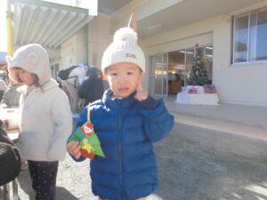 先週の金曜日のまふみ幼稚園ではクリスマス会があり、あわてんぼうのサンタクロースさんが園児たちにプレゼントを持ってきてくれました。