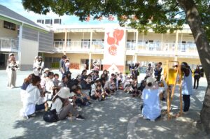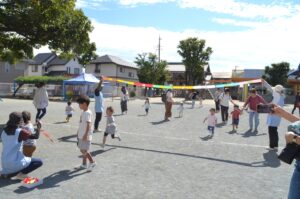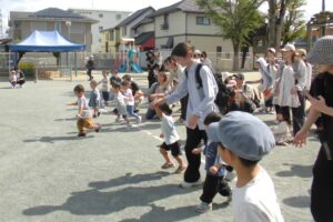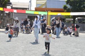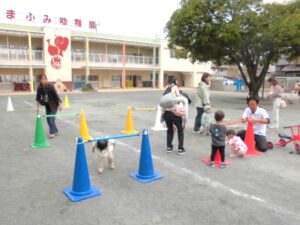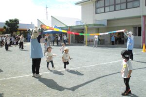 自由に園庭あそびを楽しんでから、今日は先日のまふみっこ運動会で中止になってしまった『なかよし かけっこ』をしました。