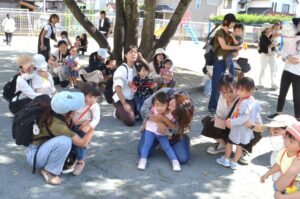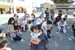 がんばったお友だちはお家の方にギューっとしてもらってとてもうれしそうでした。手遊びや絵本もお家の方と一緒に楽しみました。