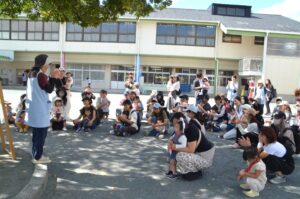 来週はハロウィンの楽しいおもちゃを作ります。季節のいい時期です。園庭でも遊びますので、ぜひ遊びに来てください。