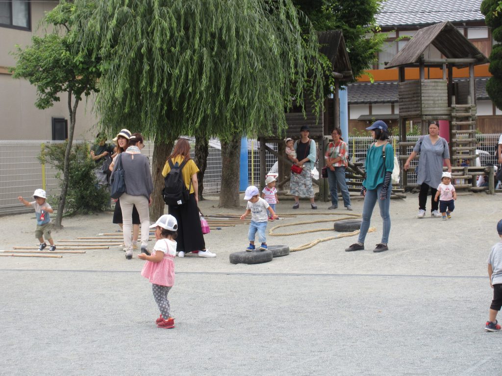 梅雨の時期ですが、水曜日はうまくお天気がもってくれて、今日のマミーズリンクも園庭での外あそびができました。